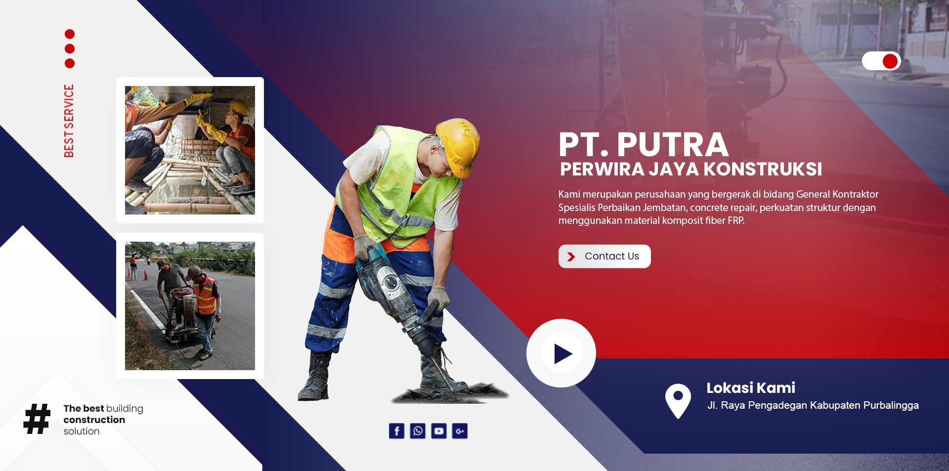 PT. Putra Perwira Jaya Konstruksi adalah perusahaan yang bergerak di bidang konstruksi, concrete repair, perkuatan struktur dengan menggunakan material komposit fiber FRP (Fiber Reinforced Polymer) yang mempunyai Applicator yang sudah tersertifikasi, kompeten dan berpengalaman.